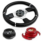 NRG-SRK-120H+008R+650RD, NRG Innovations 13.78" 350mm Black Leather Racing Steering Wheel Combo with 6 Hole Short Hub Adapter with Gen 3.0 with Handle Red Quick Release Kit SRK-120H